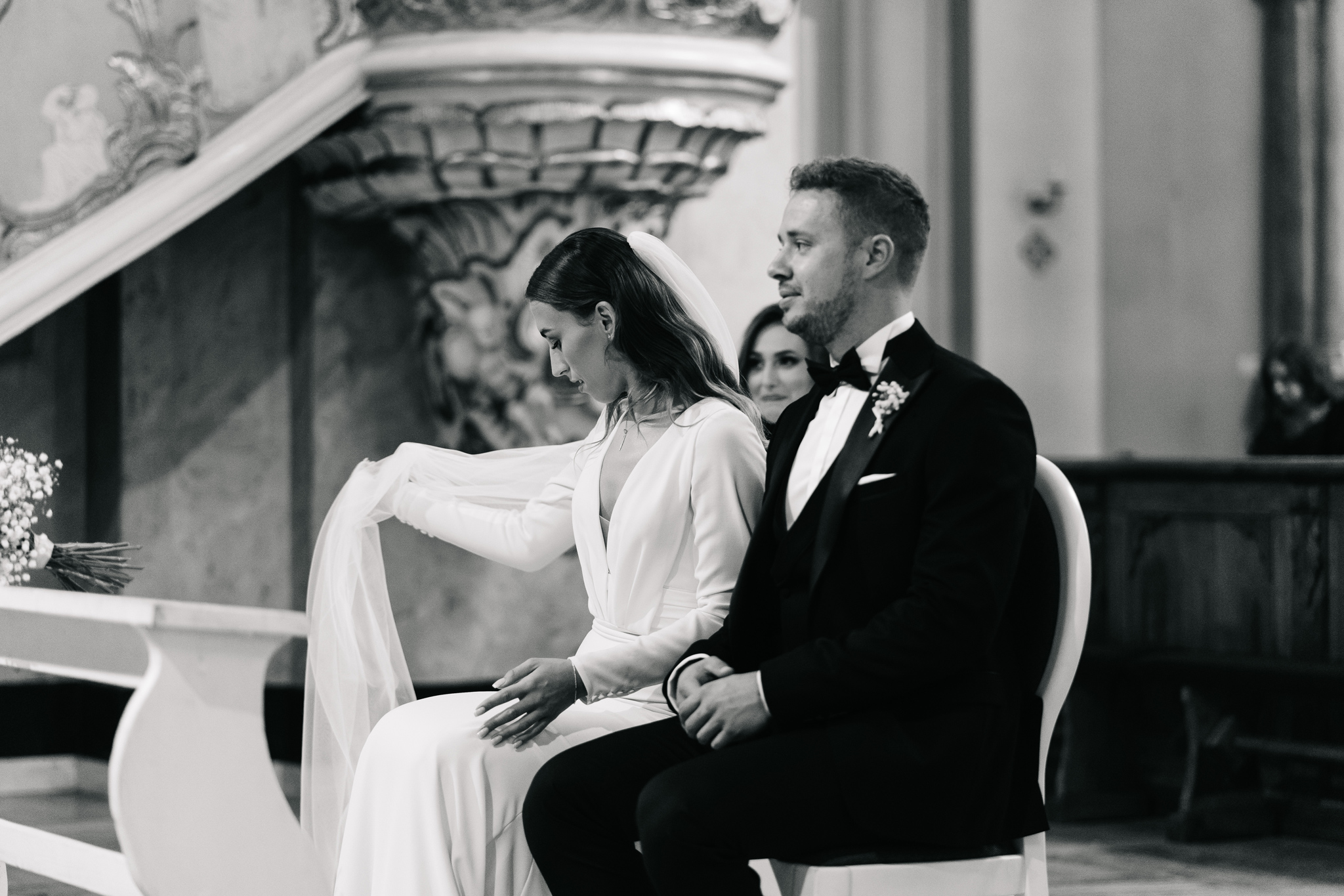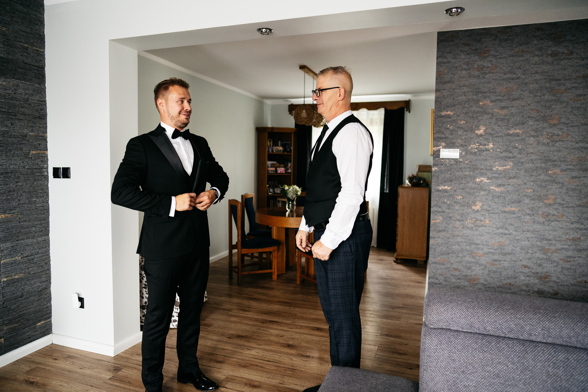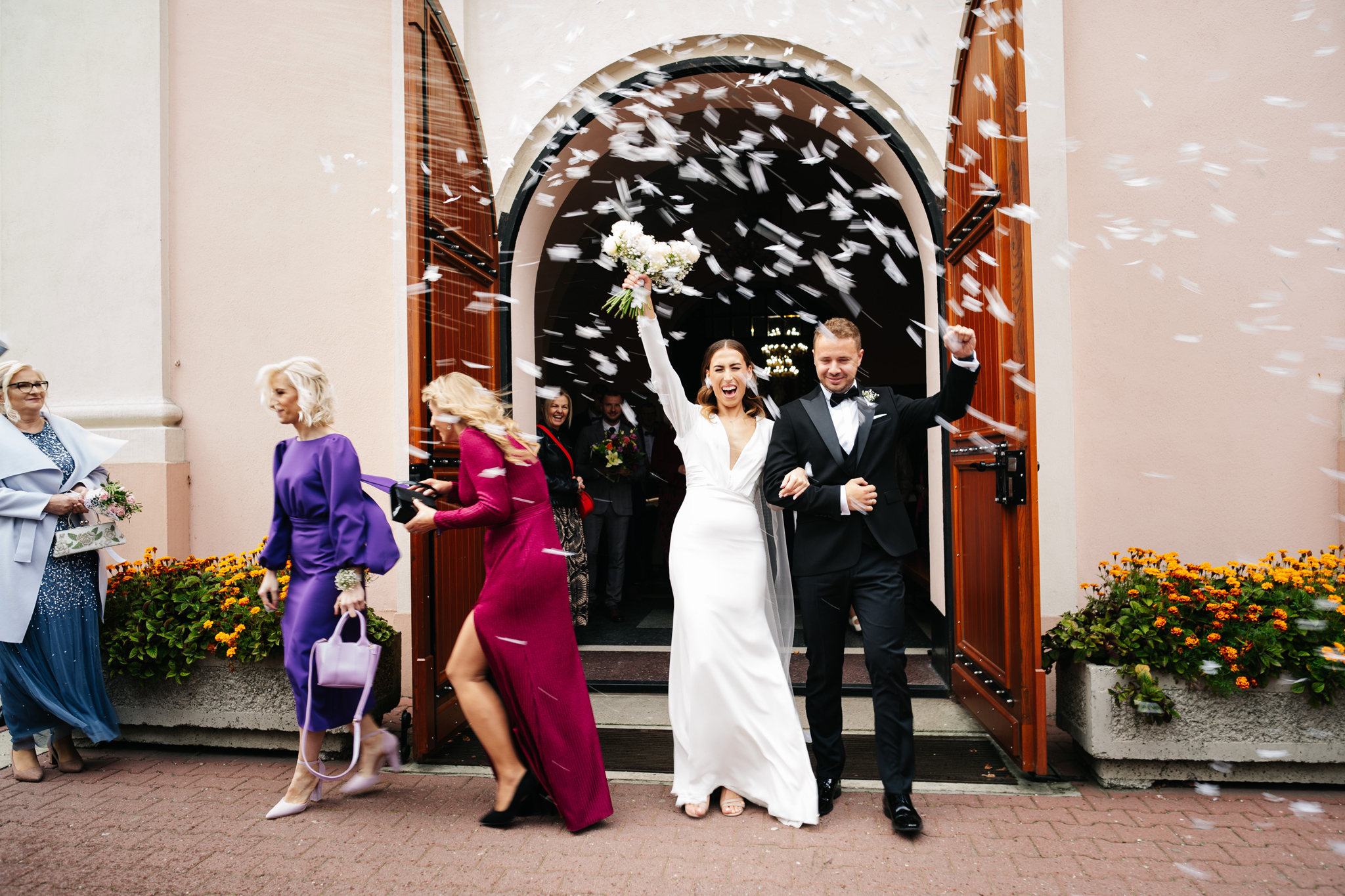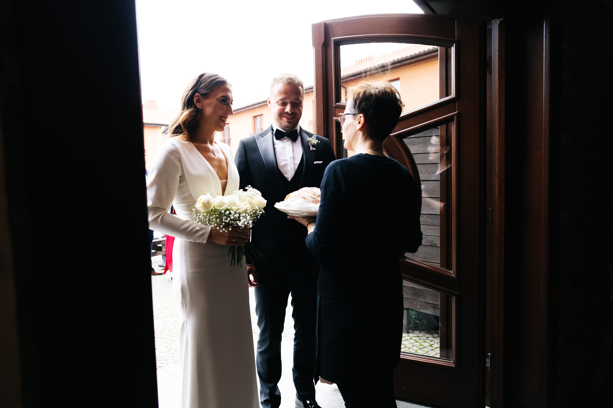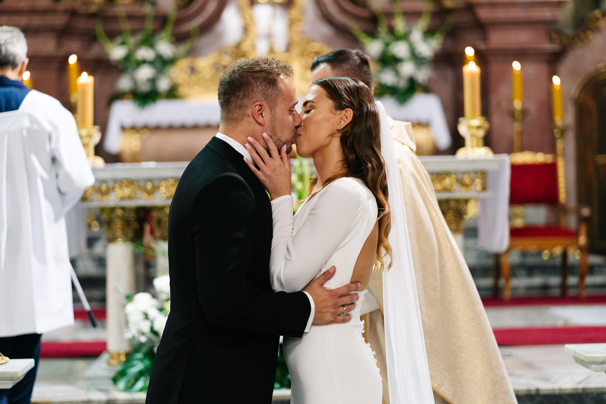 Kiedy poznaliśmy Kasię i Kamila, od razu poczuliśmy, że to para, która emanuje pozytywną energią. Byli to ludzie radośni, otwarci, a ich uśmiechy sprawiały, że praca z nimi była czystą przyjemnością. Wybór dekoracji i strojów, jaki uczynili, odzwierciedlał ich umiłowanie do klasyki, elegancji i minimalizmu, co tylko dodało wyjątkowego charakteru ich ślubowi.
