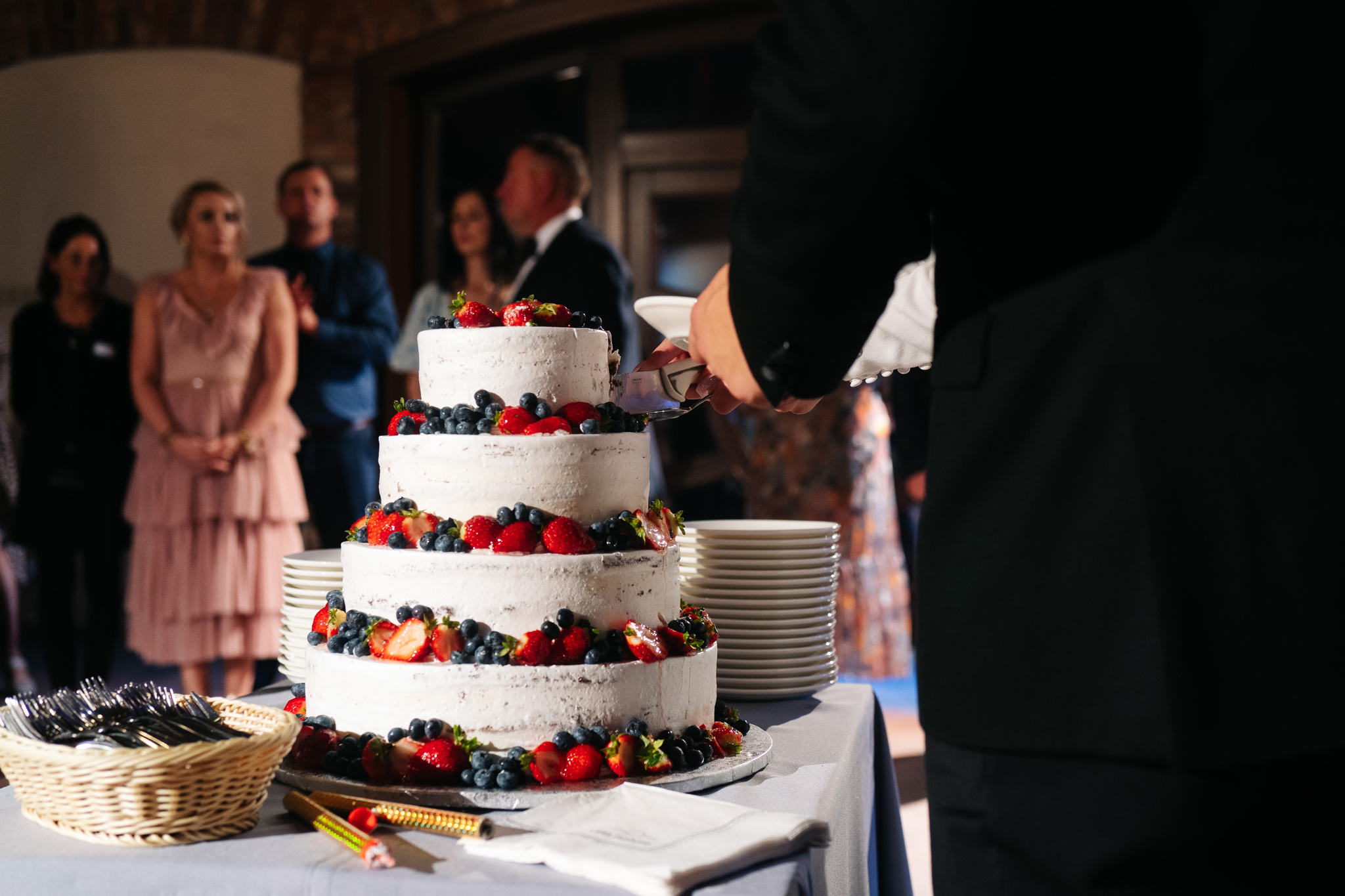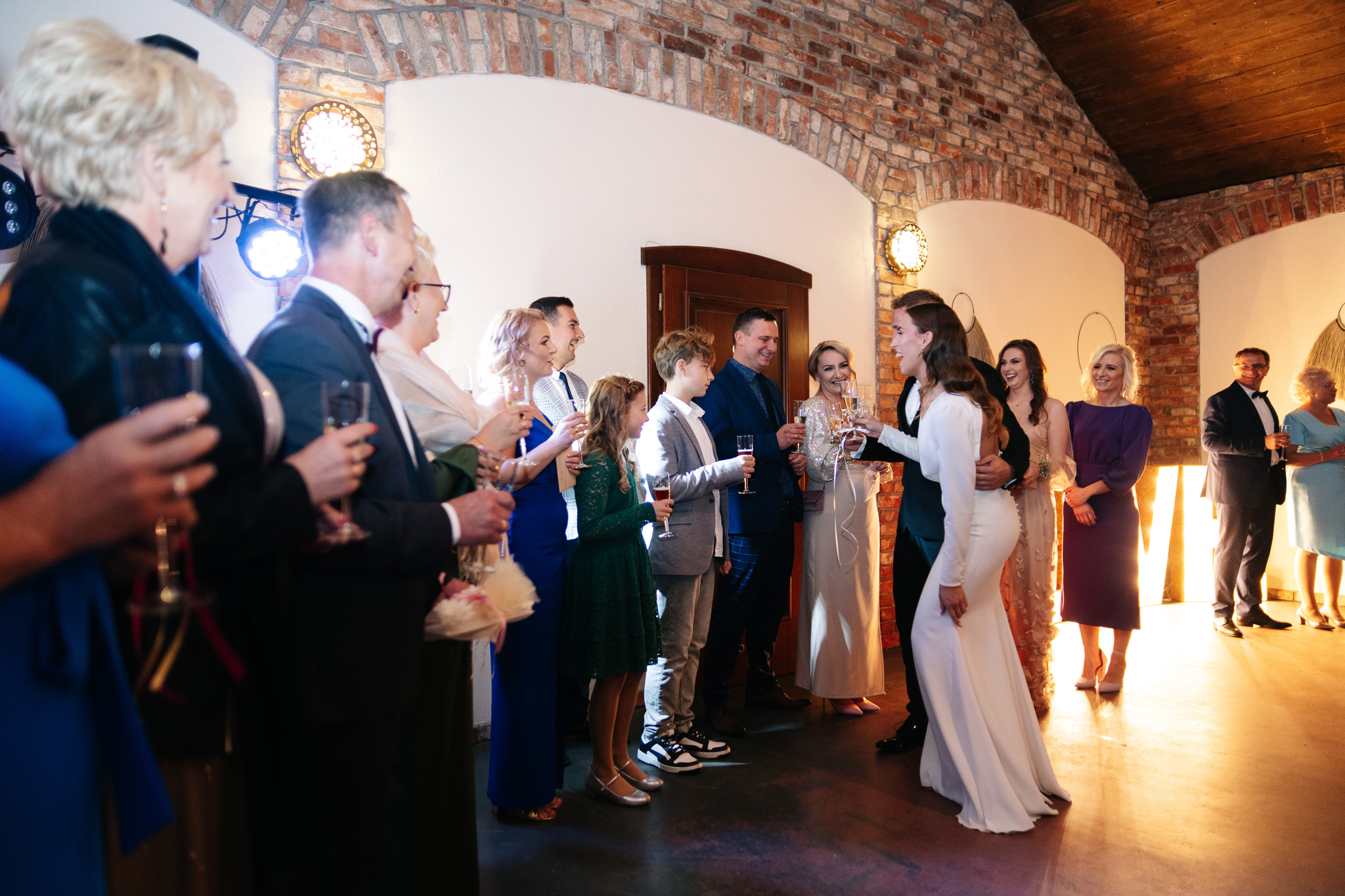 Uroczysty toast, życzenia i wspaniała atmosfera sprawiły, że było to niezapomniane przeżycie. Po obiedzie, parkiet zapełnił się gośćmi, którzy z niecierpliwością czekali na niesamowity pokaz tańca. Panna młoda przebrała się w inną sukienkę, a młodzi zaczęli tańczyć walca, który dosłownie iskrzył na parkiecie.