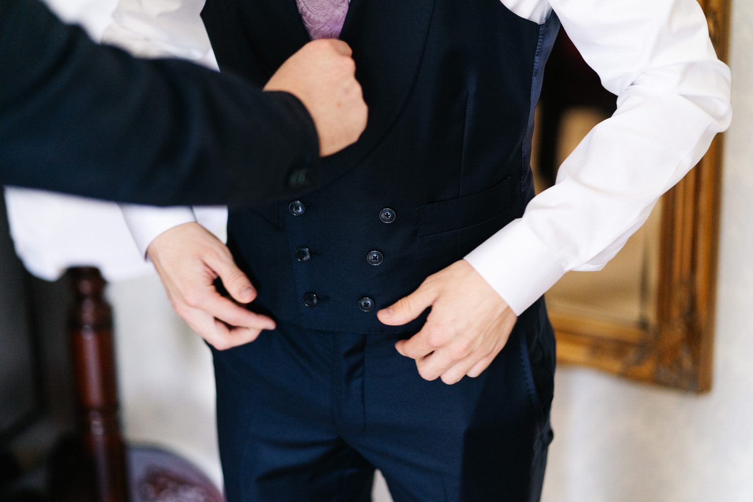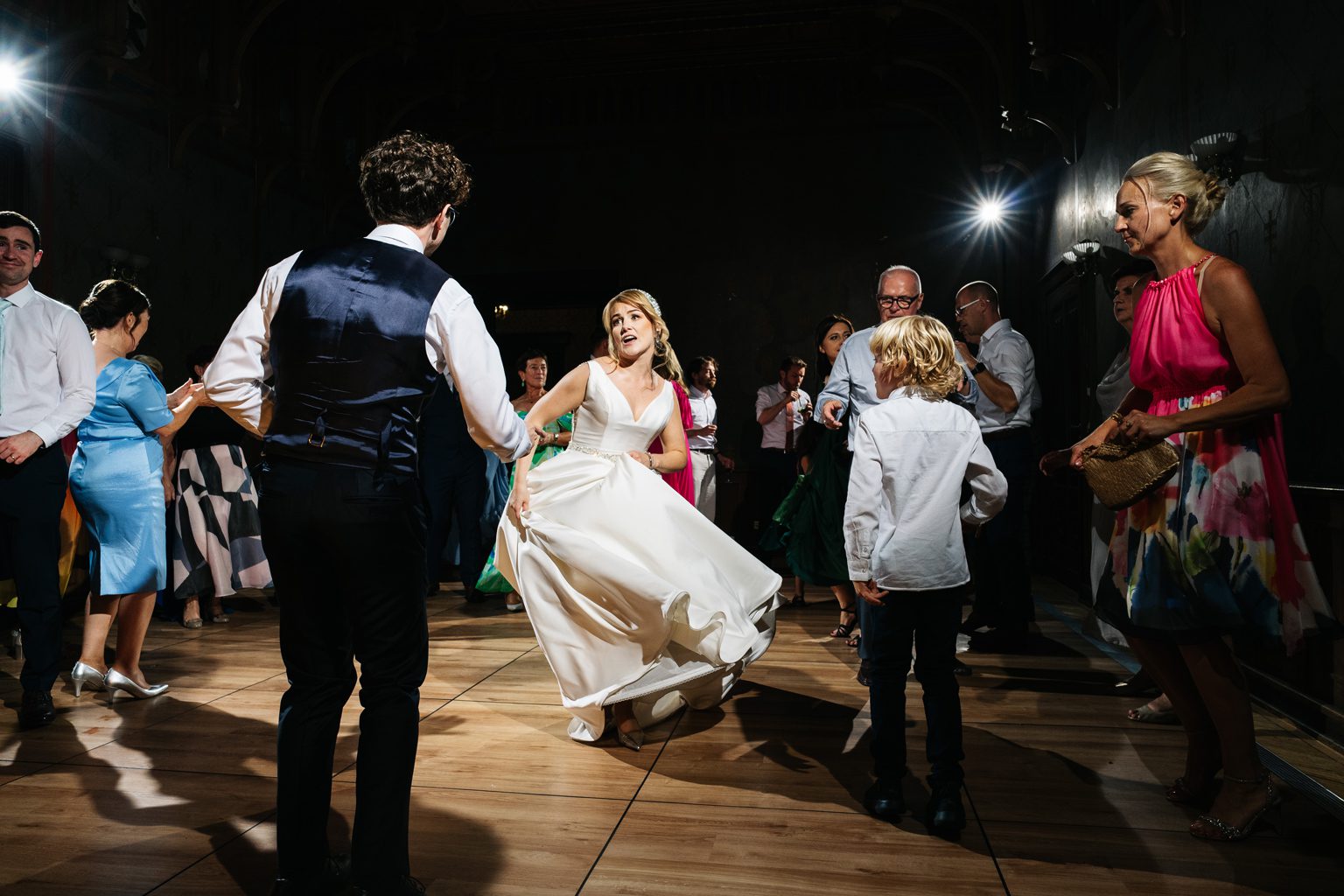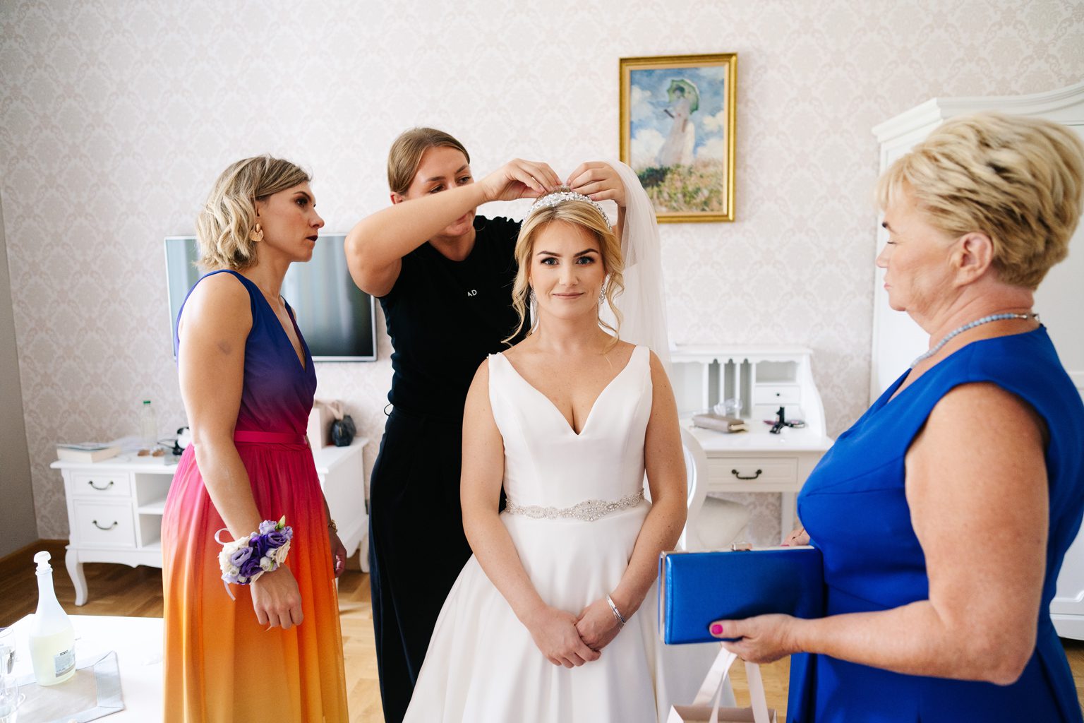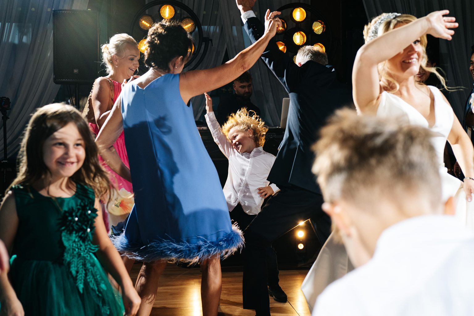 Wesele odbyło się w malowniczym pałacu, którego wnętrza zachwycały stylowymi detalami i atmosferą minionych epok. Zdobione sufity, kryształowe żyrandole i eleganckie kompozycje kwiatowe podkreśliły wyjątkowy charakter uroczystości. Przepiękna sala balowa stała się centrum wydarzeń, gdzie goście bawili się do późnych godzin nocnych.