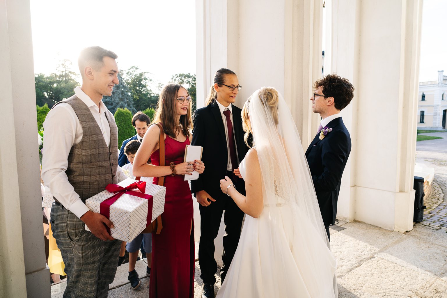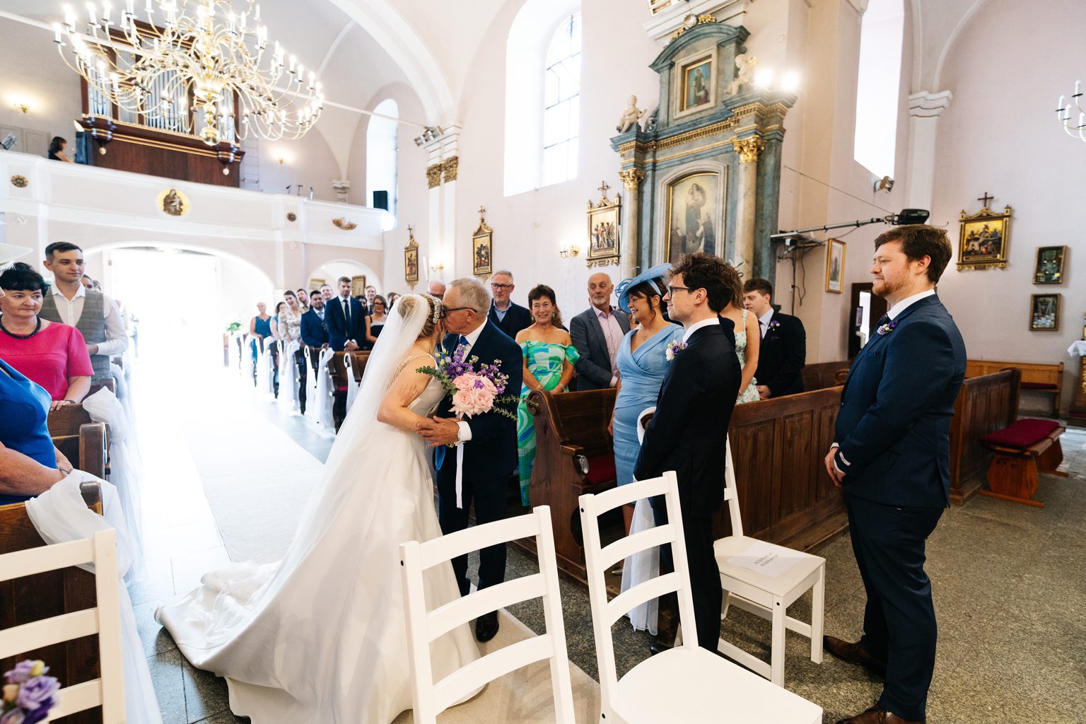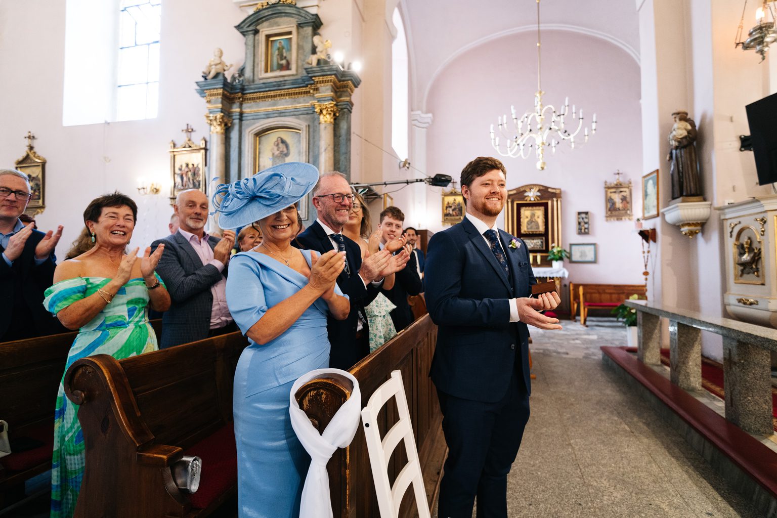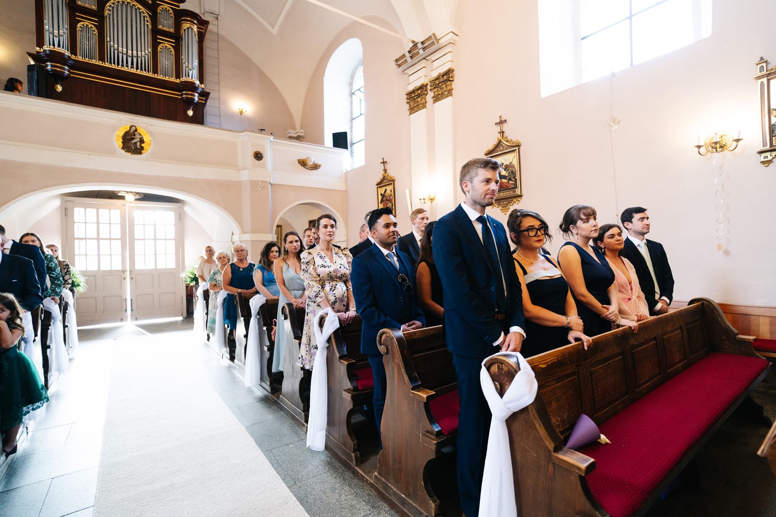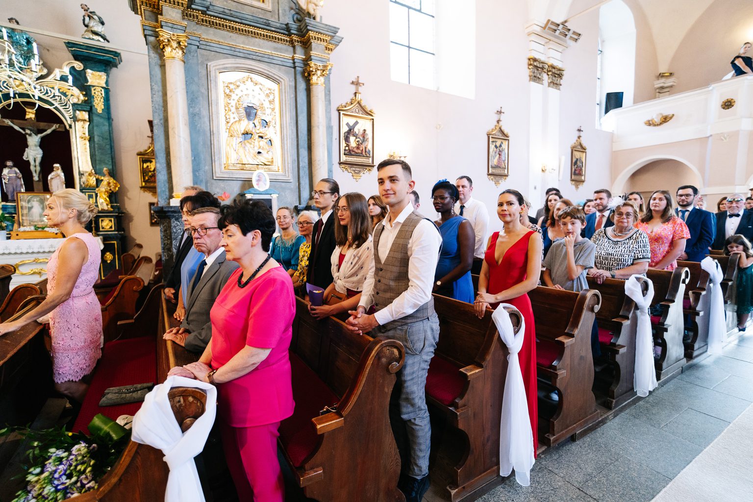 Para młoda zadała szyku, przyjeżdżając na ceremonię w klasycznym, zabytkowym aucie. Stylowe linie pojazdu i jego ponadczasowy charakter idealnie wpisały się w elegancką atmosferę dnia. Przyjazd pary młodej był jednym z najbardziej wyczekiwanych momentów, wzbudzając zachwyt zarówno wśród gości, jak i na zdjęciach.