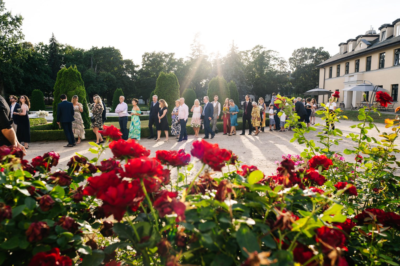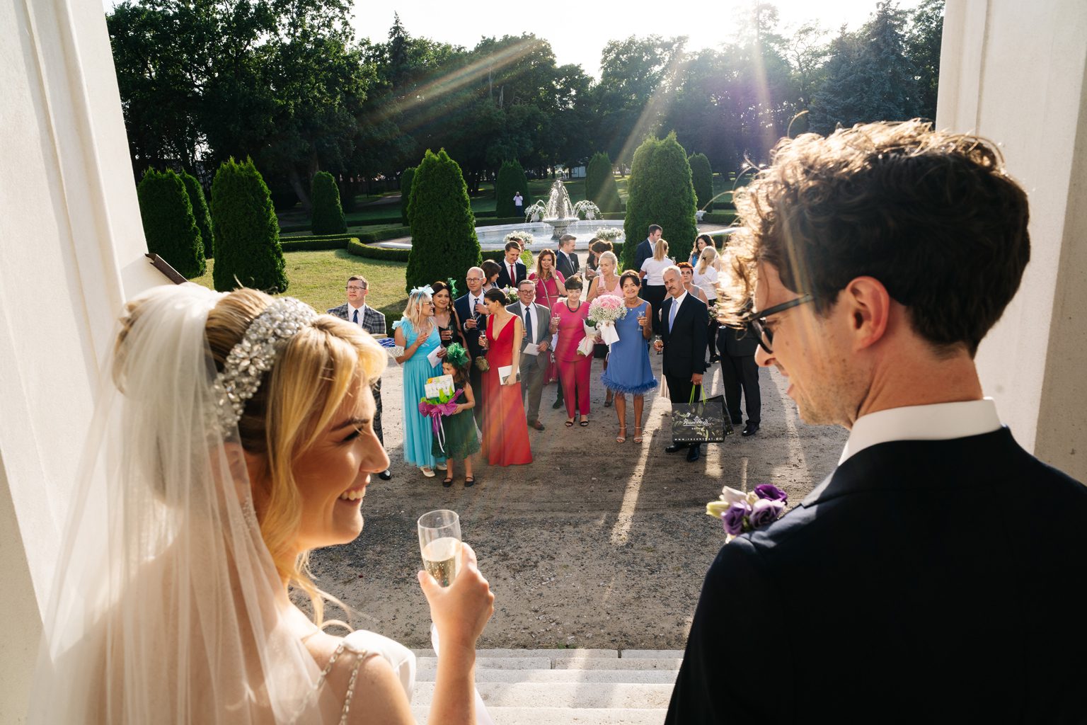 Pałacowe wnętrza i otaczające je ogrody stanowiły doskonałe tło dla sesji ślubnej Karoliny i Darragha. Każde zdjęcie opowiadało historię miłości tej wyjątkowej pary – od radosnych chwil podczas ceremonii po pełne wzruszeń momenty w blasku zachodzącego słońca.