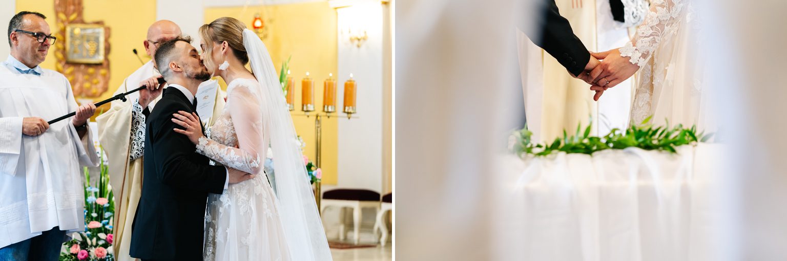 Ola i Alan to para z niesamowitą energią i luzem, który od pierwszych chwil udzielił się wszystkim dookoła. Ich dzień zaczęliśmy w Śmiglu, w klimatycznym kościele, gdzie wśród świec, wzruszeń i spojrzeń pełnych miłości, powiedzieli sobie „tak”. Było pięknie, emocjonalnie i bardzo „po ichniemu”.