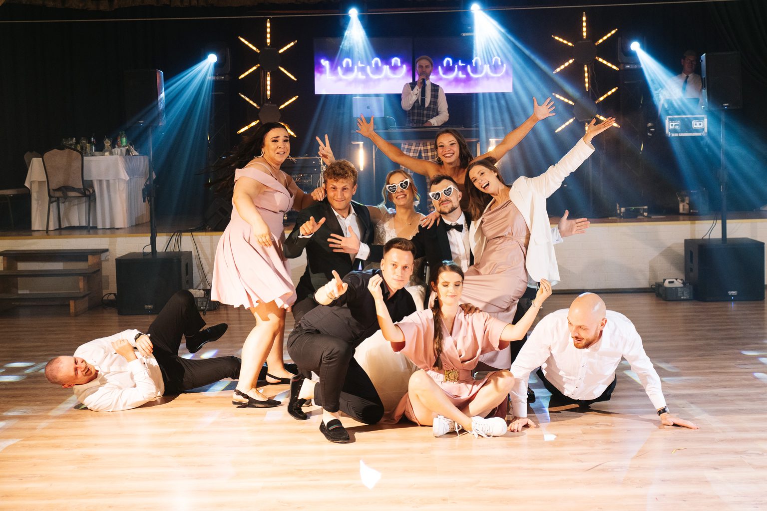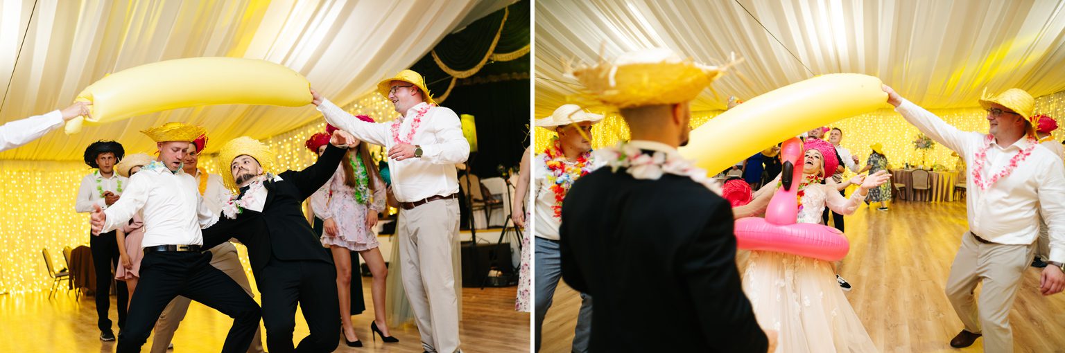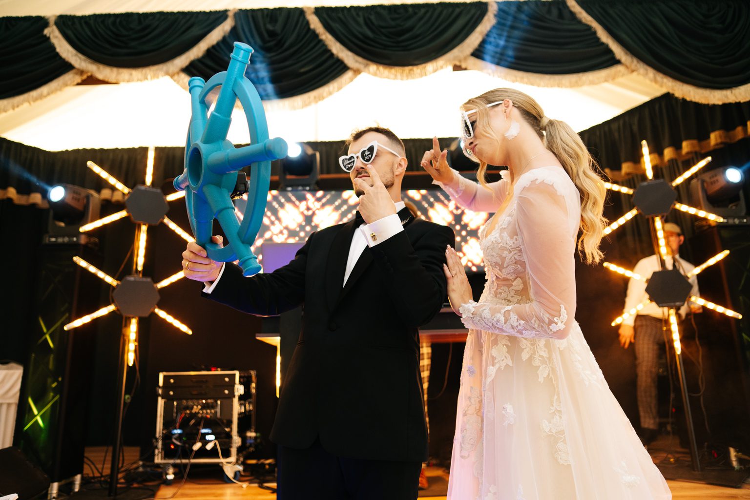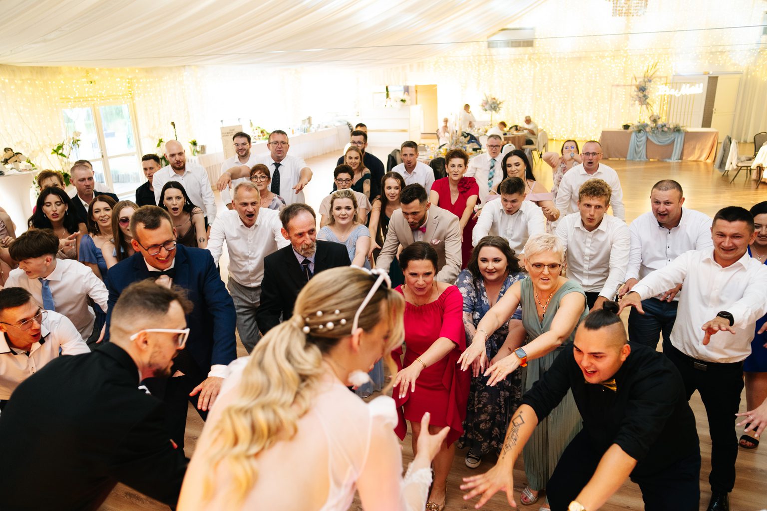 A potem… zaczęła się prawdziwa magia. Wesele pod namiotem – mnóstwo światełek, ciepły, letni klimat i totalnie wyjątkowa atmosfera. Już od pierwszych taktów muzyki wiedzieliśmy, że parkiet będzie płonąć. I nie pomyliliśmy się! Goście nie schodzili z niego do samego rana – było głośno, radośnie i totalnie bez spiny. Takie imprezy kochamy najbardziej.