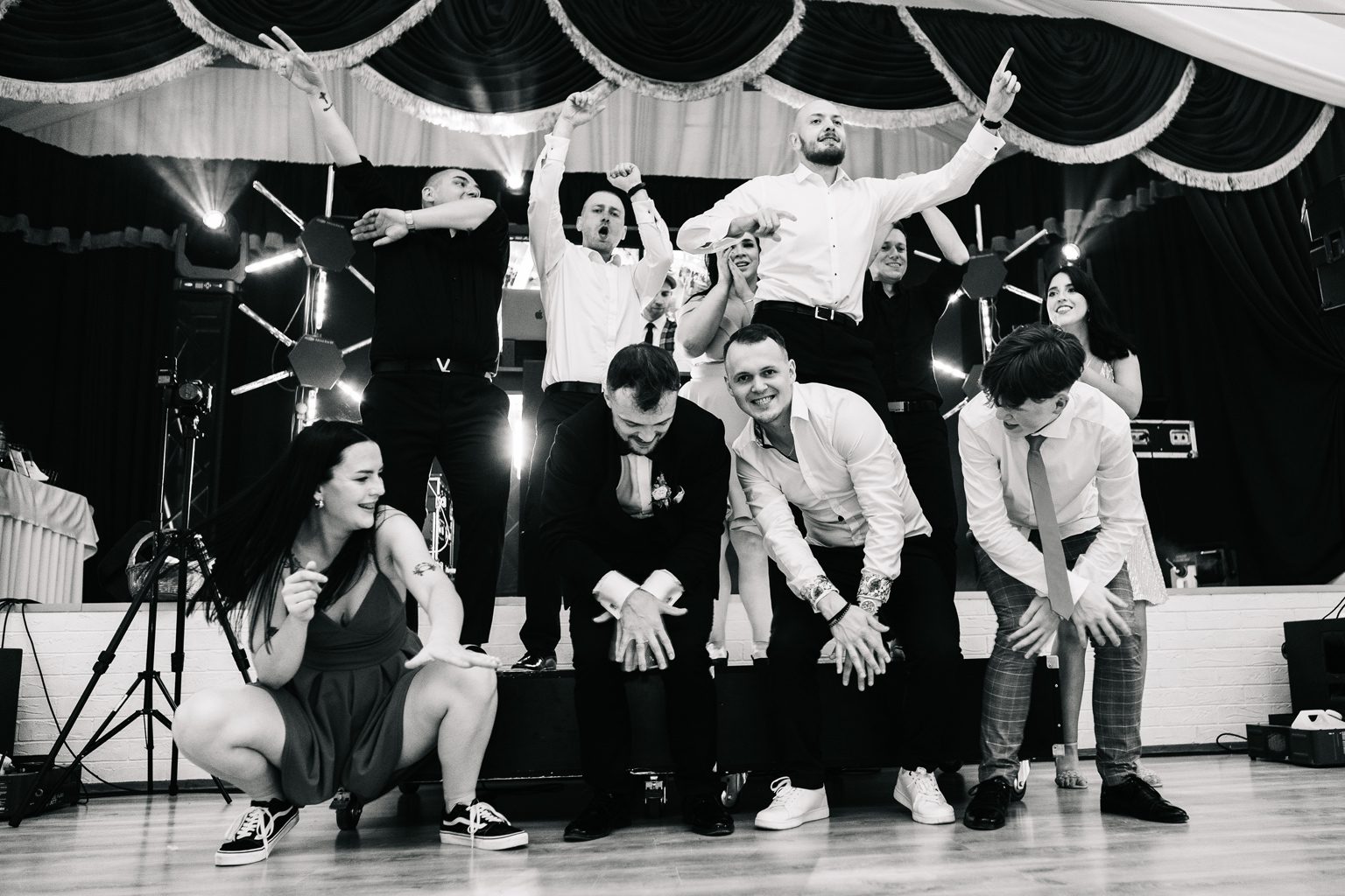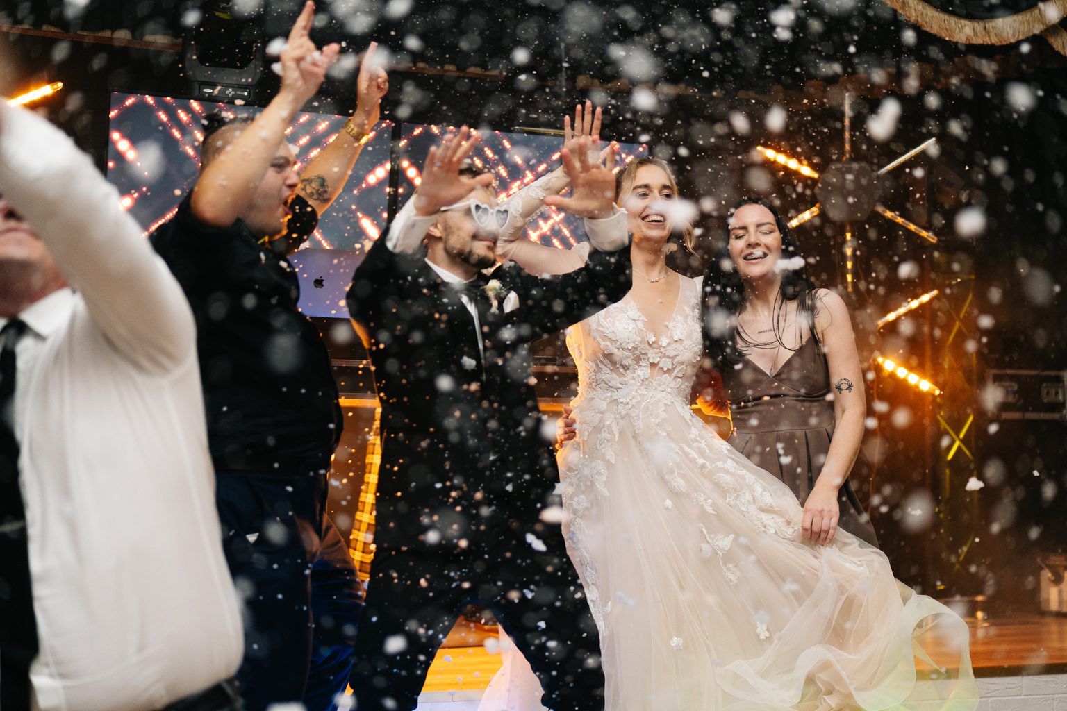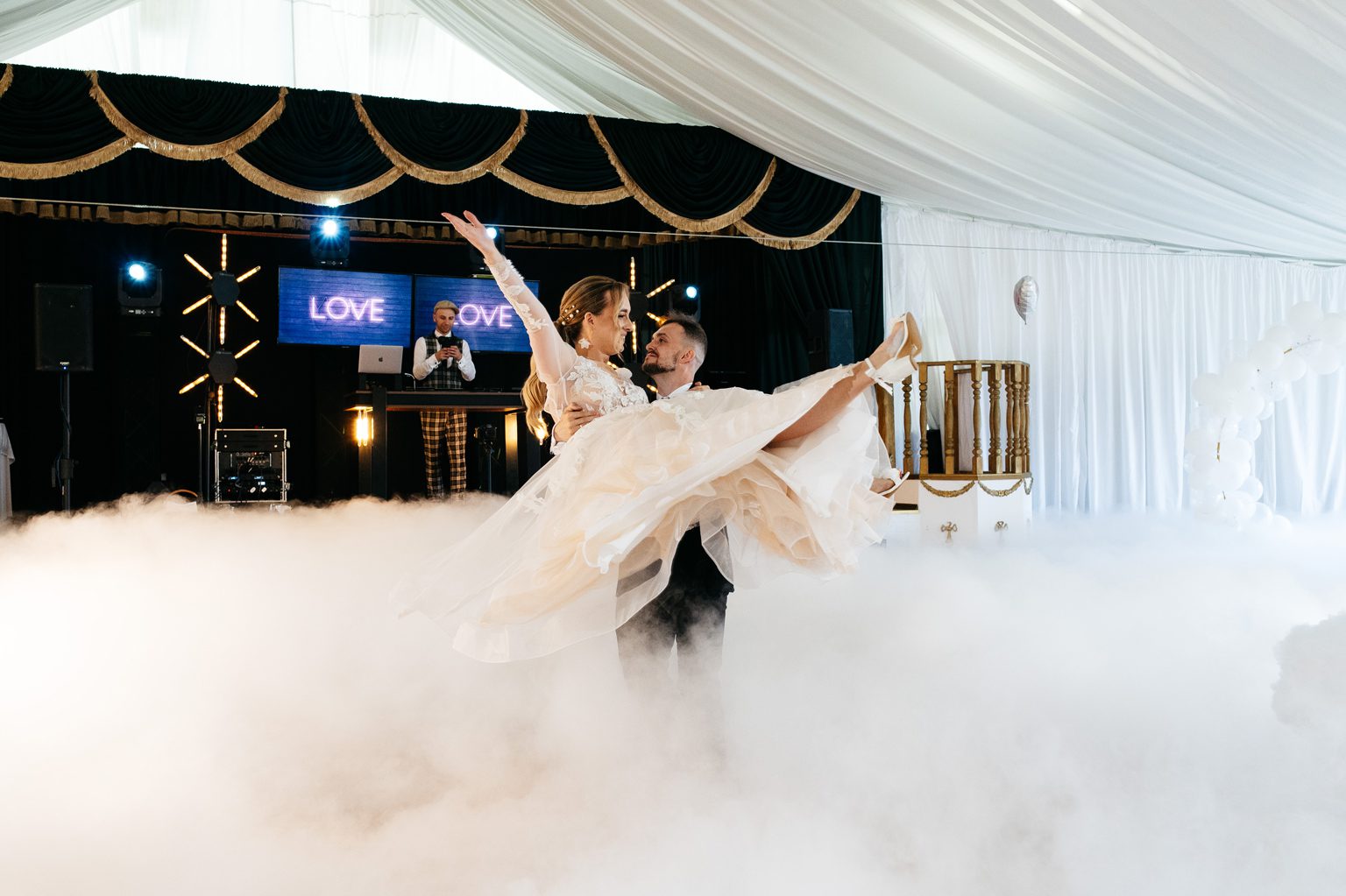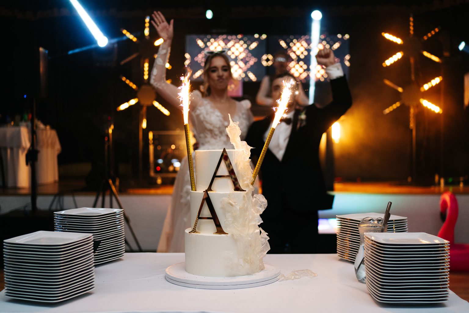 A potem… zaczęła się prawdziwa magia. Wesele pod namiotem – mnóstwo światełek, ciepły, letni klimat i totalnie wyjątkowa atmosfera. Już od pierwszych taktów muzyki wiedzieliśmy, że parkiet będzie płonąć. I nie pomyliliśmy się! Goście nie schodzili z niego do samego rana – było głośno, radośnie i totalnie bez spiny. Takie imprezy kochamy najbardziej.